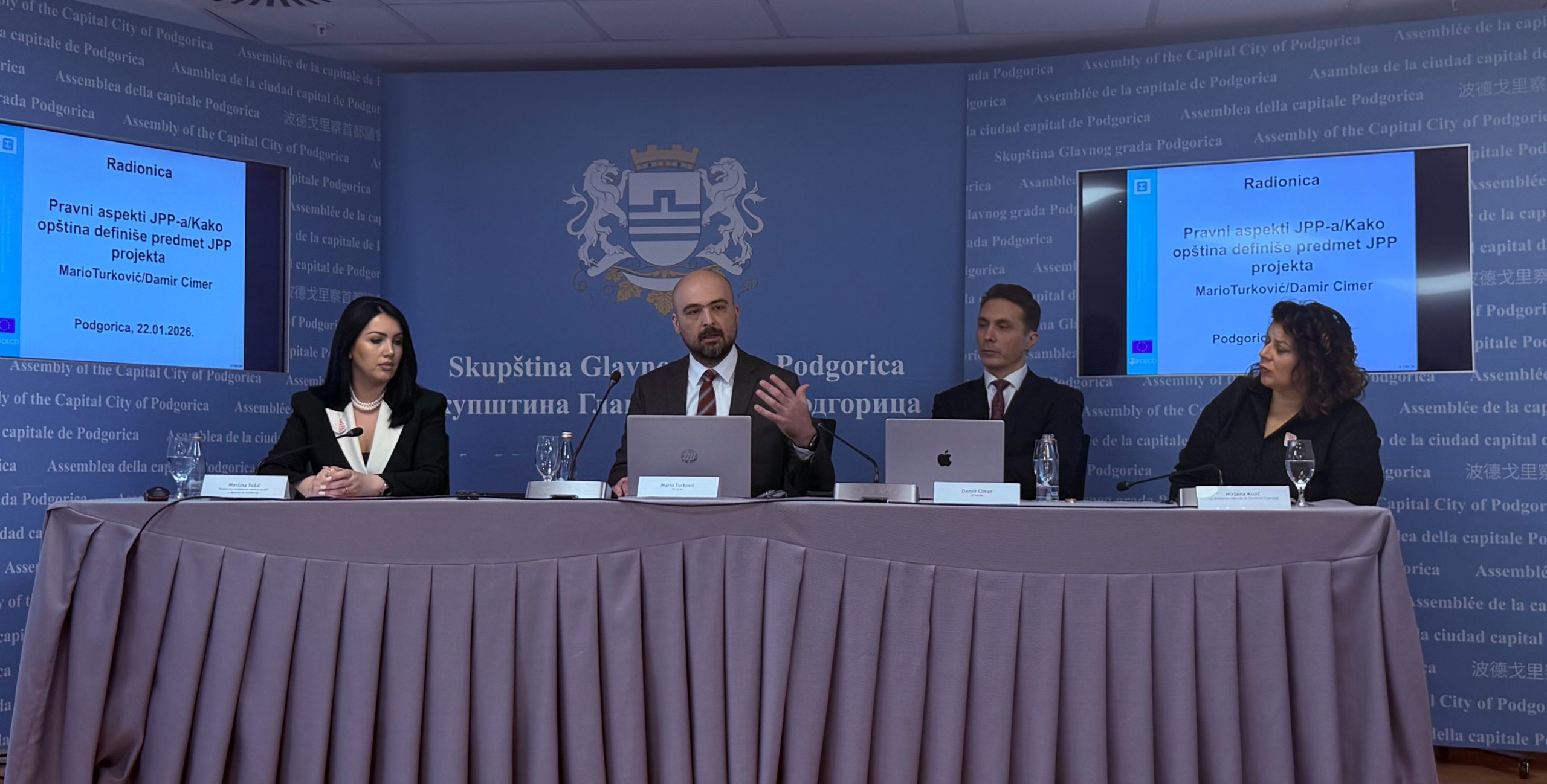 On January 22 22. and 23, 2026, the Montenegrin Investment Agency and the Union of Municipalities of Montenegro, in cooperation with the Ministry of Finance and consultants engaged through the SIGMA Programme, organized a workshop dedicated to Public-Private Partnerships (PPPs) and the development of potential PPP projects at the local level. The workshop was held at the premises of the Assembly of the Capital City of Podgorica.